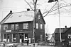 Dronningens gate 17, Narvik, 1926. Her ser man det første utsalget til venstre i 1. etasje. I kjelleren hadde de produksjon, mens de slaktet i bakgården. I huset til høyre bodde familien Kuraas.