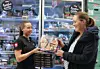 Assisterende butikksjef Madeleine Gjerde hos Meny Ringnes Park i Oslo har holdt av et lite lager vegansk pizza, til glede for kunde Andrea Pichlo.