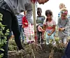 Barnehage på besøk i åkeren på Dysterjordet Andelslandbruk. Foto: Emma Gerritsen