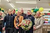 Nyåpnet: Flere hadde tatt turen til Jokers første, nyåpnede høyteknologiske butikk. Bak f.v. kjededirektør Kjøpmannshuset Kjetil Flåtrud og adm. direktør i Mat-Norge Hans Olav Bakås. Foran f.v. Eirik Habberstad, daglig leder i Butikkpartner Trine Riis Groven, butikksjef Petter Christensen og Skiens ordfører Hedda Foss Five. Foto: Mat-Norge