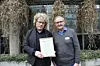 Dag Jørund Lønning fikk hedersprisen Årets Meitemark 2019. Her sammen med styreleder i Økologisk Norge, Jostein Trøite. Foto Lotte Shephard
