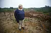 Statsminister Erna Solberg ser på et avskoget område i regnskogen på Sumatra i Indonesia. Foto: Heiko Junge, NTB scanpix