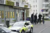 Politi ved Bunnpris på Lambertseter der en ansatt ble stukket med et stikkvåpen torsdag. Foto: Heiko Junge, NTB