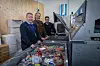 Fornøyde: Kjell Olav Maldum fra Infinitum og Frode Bremnes fra Smart Supply viser fornøyd frem de nye pantesekkene, som er billigere og mer miljøvennlige. John Roger Hansen i Rema 1000 er svært fornøyd med den nye løsningen.