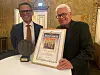 Tore Tjomsland fikk tildelt diplom og statuett av Nico Widerberg av ordfører i Årsmøtet, Stig Mortensen