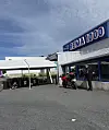 Førsteinntrykk: Rema 1000 Nedenes har godt med parkeringsplasser, og eksponerer blomster og planter i et telt utenfor inngangen.