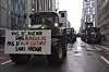 «Ingen framtid uten landbruk, intet landbruk uten framtid», står det på plakaten. Det foregår store bondedemonstrasjoner i Brussel mens europeiske landbruksministre møtes i byen. Foto: Nicolas Landemard | AP | NTB