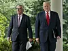 President Donald Trump (t.h.) og kommisjonsleder Jean-Claude Juncker ble 25. juli enige om å øke handelen med soyabønner. Nå har EUs import skutt i været. Foto: AP, NTB scanpix