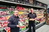 Populær avdeling: Butikksjef Per Arne Finstad (til venstre) og frukt- og grøntansvarlig Truls Schei på Meny Tangen har faste kunder som er ekstra opptatt av frukt og grønt.