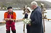 Kjell Sørbø viser kongeparet en snøkrabbe ved ankomsten til Kjøllefjordunder fylkesturen i Finnmark for to år siden. Arkivfoto: Terje Bendiksby / NTB scanpix