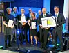 Pptimeringsprisen 2017 ble delt ut av Thomas Weihe (t.h.) i DLF. Hanne Møller (fra venstre) Østfoldforskning, Frank Robert Müller (Tommen Gram), Stig Søberg (RPC Bebo Food Packaging), Atle Flom (Døvigen), Marit Kvalvåg Pettersen (Nofima), Ivar Holtet (BWL) og Thomas Eie (BAMA Industri) var til stede for å motta prisen. Foto: Per Øyvind Nordberg