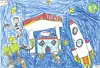 Imre fra Åsheim barneskole vant tegnekonkurransen «Fremtidens Bensinstasjon» i regi av Circle K Heimdal. Nå skal bidraget hans utstilles permanent på stasjonen.