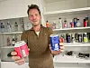 Kan glippe: Svein Rune Haugsmoen i Infinitum med en boks som ble godkjent og en som ikke ble det. – Hvitt på blått ga for dårlig lesbarhet, sier Haugsmoen, som understreker at de fleste blir godkjent på første forsøk.