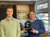 Edward Andrassy Corneliussen, Business Consultant, NielsenIQ og Niklas Minken, kommersiell direktør, Hansa Borg Bryggerier med prisen Bases Breakthrough Innovation winner 2021.