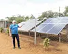 Solkraft: Kiwi-gründer Tor Kirkeng viser solcellene som gir kraft til å pumpe opp vann.
