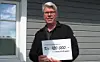 Espen Irwing Swang i Ringerike og Hole Røde Kors med sjekken fra Smurfit Kappa.