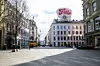 Egertorget på Karl Johans gate i Oslo ble folketomt i mars etter Oslo kommune og regjeringen kom med strenge tiltak for å begrense koronasmitten. Nå faller leieprisene. Foto: Håkon Mosvold Larsen, NTB