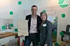 Miljøsjef Knut Lutnæs mottar Svanemerkets hederspris av Anita Winsnes, direktør i Miljømerking.