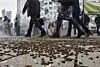 Under årsmøtet til Bayer, som har kjøpt Monsanto, la demonstranter ut døde bier som en protest mot selskapets aktivitet. Monsanto utvikler genmodifiserte frø og står blant annet bak ugressmiddelet Roundup. Bildet er fra slutten av april og er tatt i Bonn i Tyskland. Foto: AP, NTB scanpix