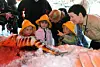 Illustrasjonsfoto. Tre barn fra Slettebakken barnehage i Bergen med tidligere fiskeriminister Helga Pedersen på Fisketorget i Bergen. Foto: Marit Hommedal, NTB scanpix