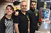Ny butikk: Maira Khawaja, Asim Khawaja og Sharjeel Khalid bød på kake og godt humør da de åpnet dørene for første gang i Bunnpris Møllergata torsdag morgen.