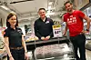 Miriam Mydland i kolonialavdelingen, kjøpmann Ronny Kvammen og kolonialansvarlig Anders Hagen gjør klart til at nyhetene kommer til Meny Colosseum.