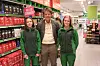 Bernt G. Apeland, administrerende direktør i Virke, møtte Emma (14) og Ella (15) som har fått sommerjobb på Kiwi Skjærhalden i Hvaler.