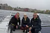 Eiendomssjef i Storcash Norge, Morten Malnes(t.v.) på taket der Buskerud største, og landets fjerde største, solcelle-anlegg er montert. Her sammen med prosjektleder Anette Gjestemoen og administrerende direktør Morten Hotvedt i Vestaksen Eiendom AS. Taket tilhører det nye Storcash-markedet like ved E18 i Kobbervikdalen.