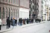 Vinmonopolet oppfordrer til å starte årets julehandel av flytende varer tidlig, dette med tanke på korona og smittevern. Her polkø dagen før skjærtorsdag i år. Foto: Berit Roald, NTB